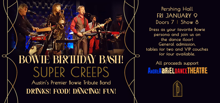 Kick off your 2026 with a fun and groovin’ time celebrating the best of Bowie music with Austin’s premiere Bowie tribute band SUPER CREEPS.